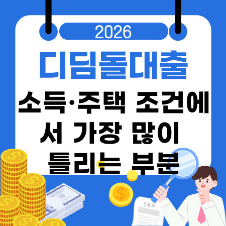 💰디딤돌대출 소득·주택 조건에서 가장 많이 틀리는 부분 🏠 디딤돌대출은 무주택 세대주이면서 부부합산 연소득이 제도상 일정 범위 이하일 때만 신청이 가능합니다. 특히 맞벌이·외벌이 가구 간 소득 …
